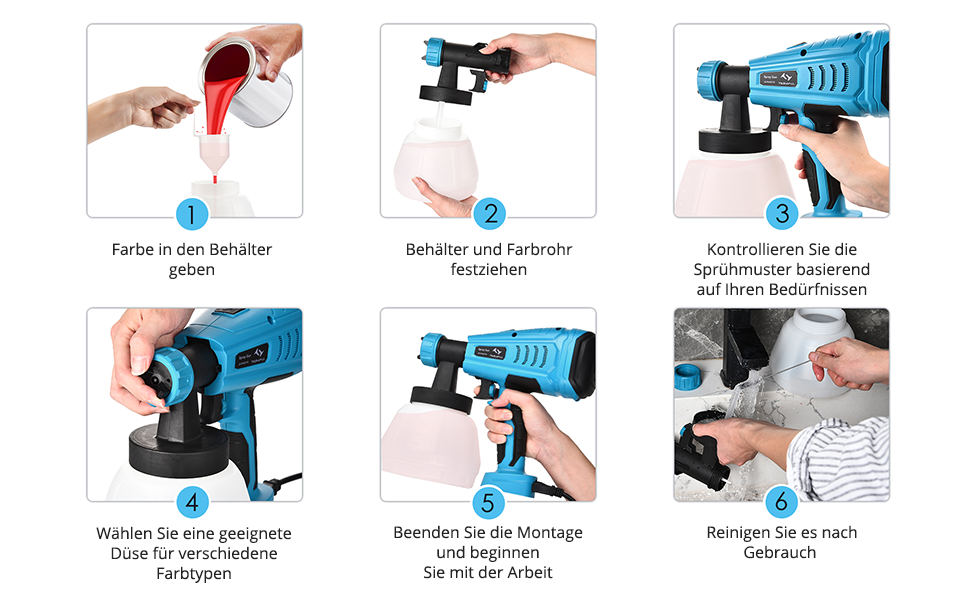Paint Sprayer 1300ml 800w High Power Electric Spray Gun 1100ml Min Spray Paint Gun With 1 8m Hose 3 Nozzle 3 Spray Patterns Fruugo Es